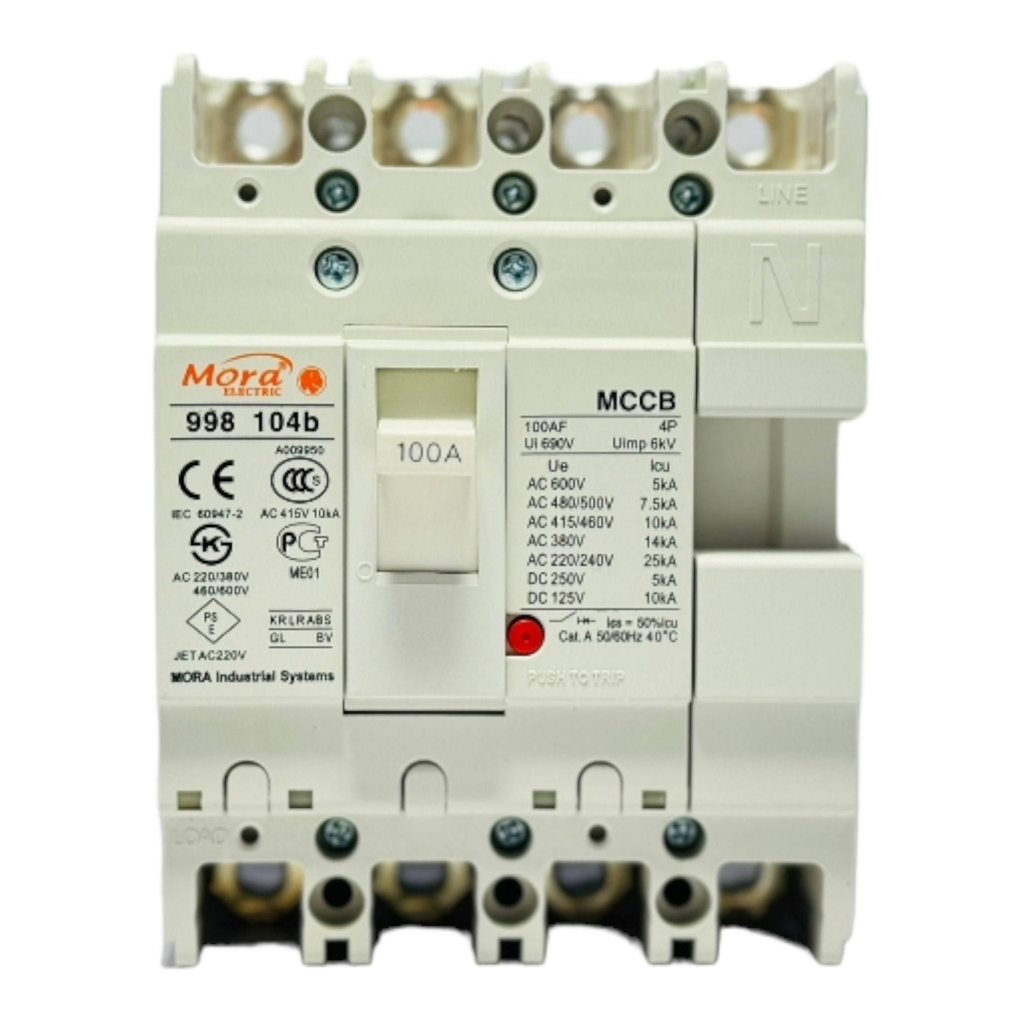 The Mora MCCB 100A 4-Pole Disconnect Switch offers robust protection and safe disconnection for three-phase systems. Ideal for industrial and commercial applications, it combines overload and short-circuit protection with high durability and reliable performance.